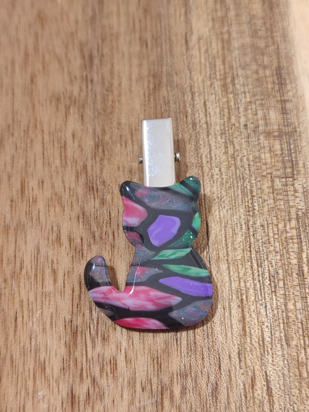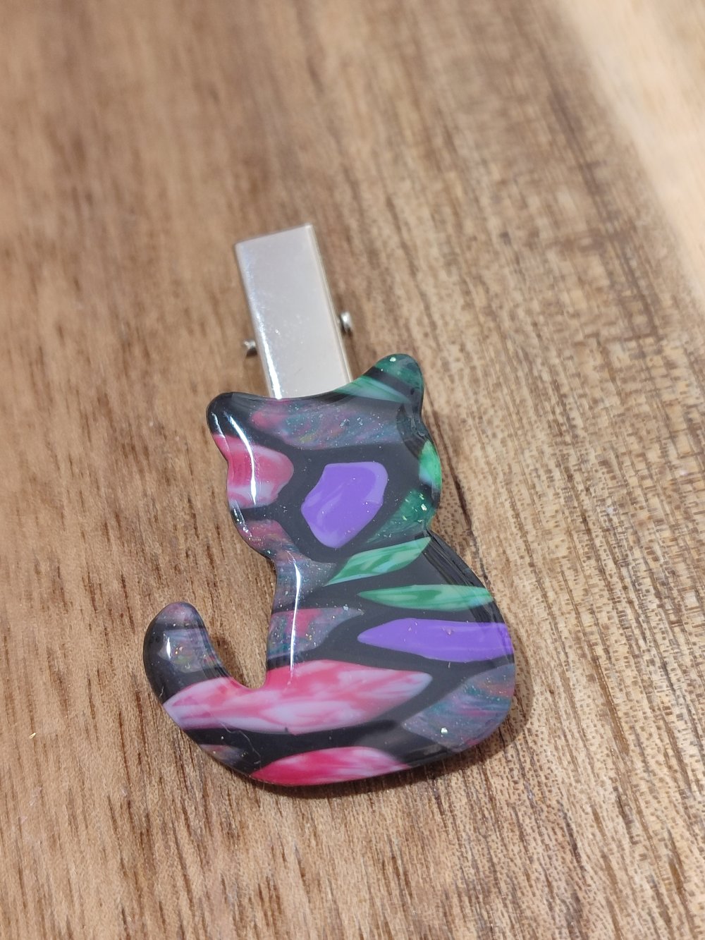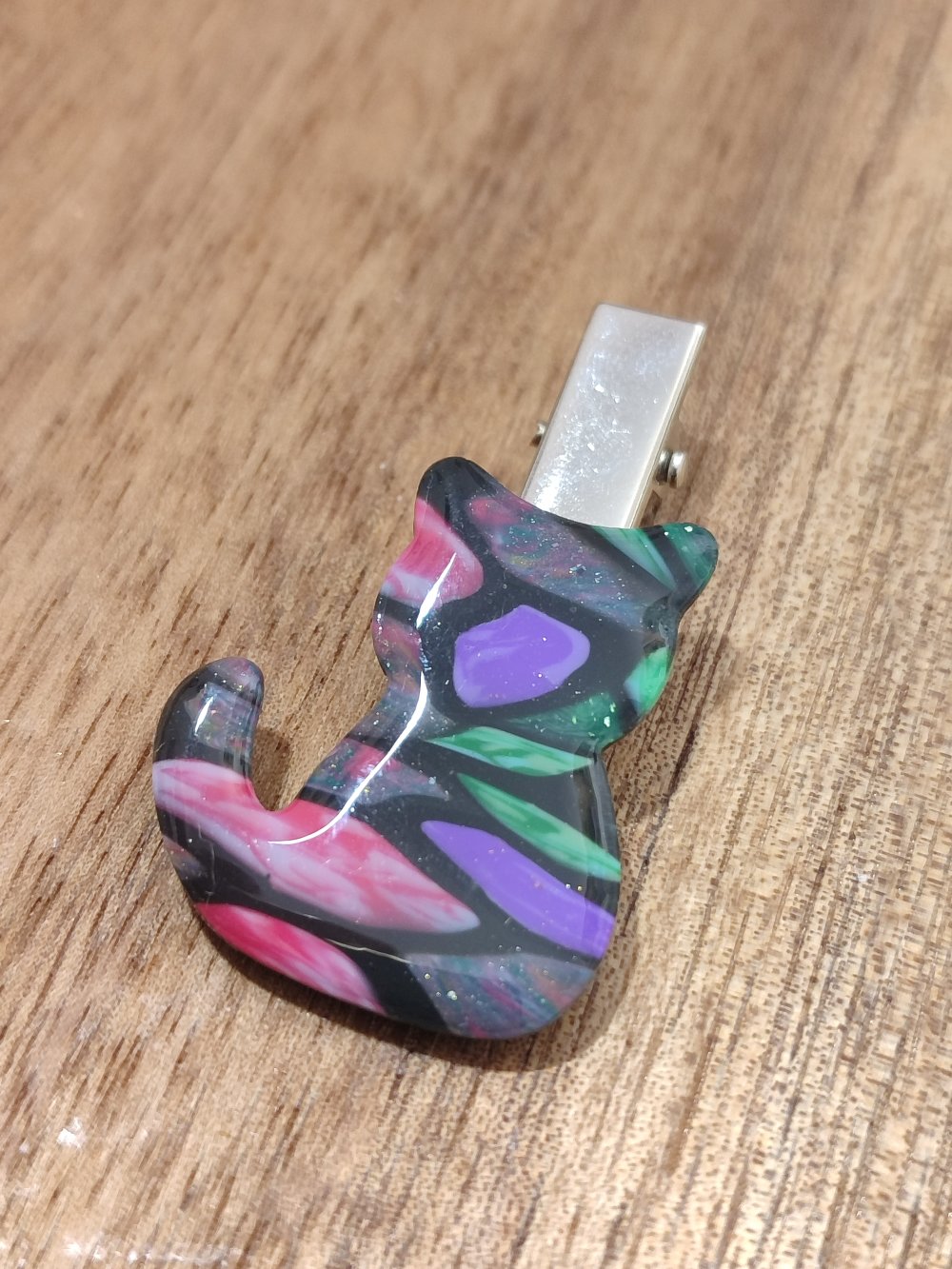 Barrette pour cheveux modèle unique papillon oiseau chat en pâte polymère