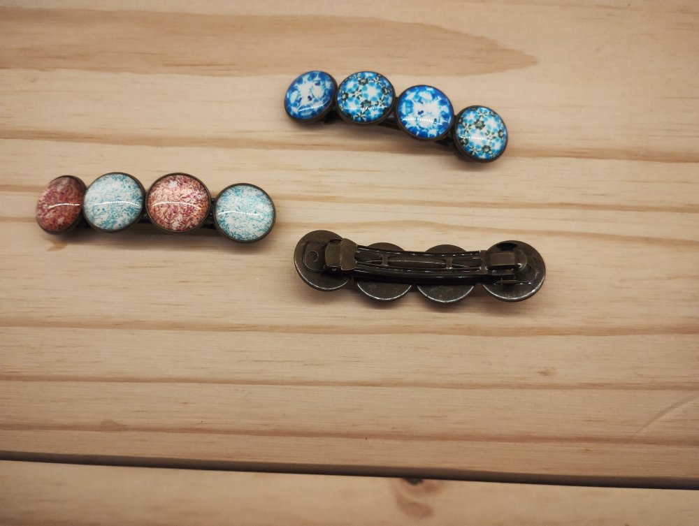 Je crée des objets en bois et des bijoux à l'aide de ma scie à chantourner mais je travaille également d'autres matières comme la résine.