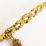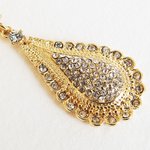 Idéal pour une soirée ou une fête, voici une magnifique pince à cheveux pailletée doré or, agrémentée d'une composition avec perles Shambala, gros strass carré, rondelles dorées avec strass, et superbe goutte en métal doré travaillée finement avec une multitude de strass.