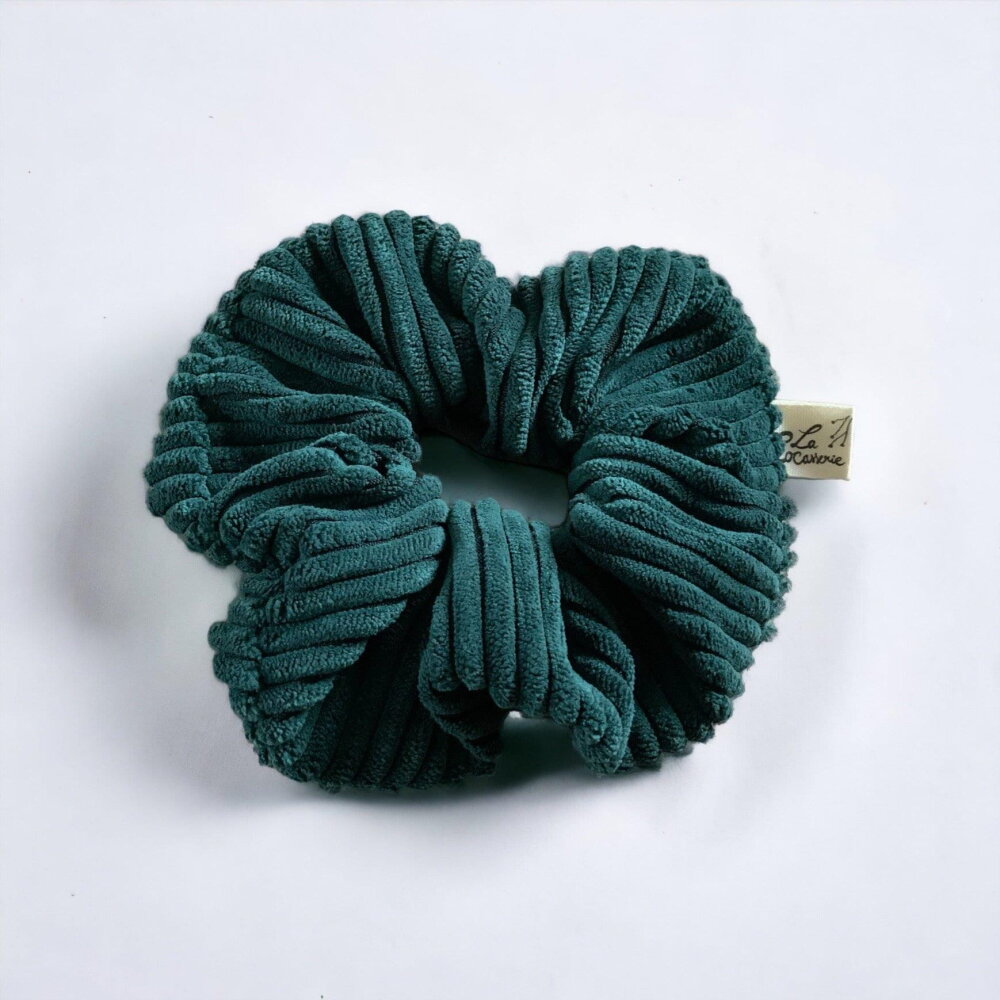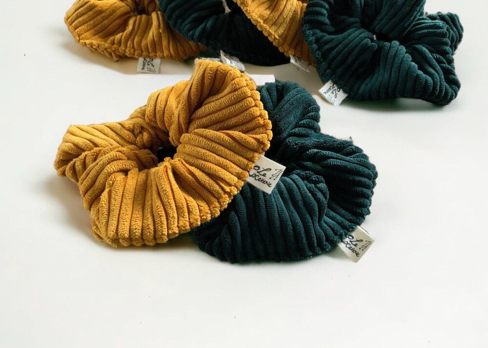 Chouchou en velours côtelé jaune moutarde ou vert sapin.