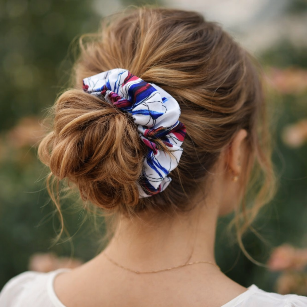 Chouchou réalisé dans un tissu "popeline fleurie" respectueux de votre chevelure.