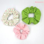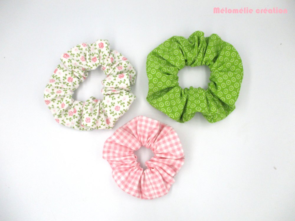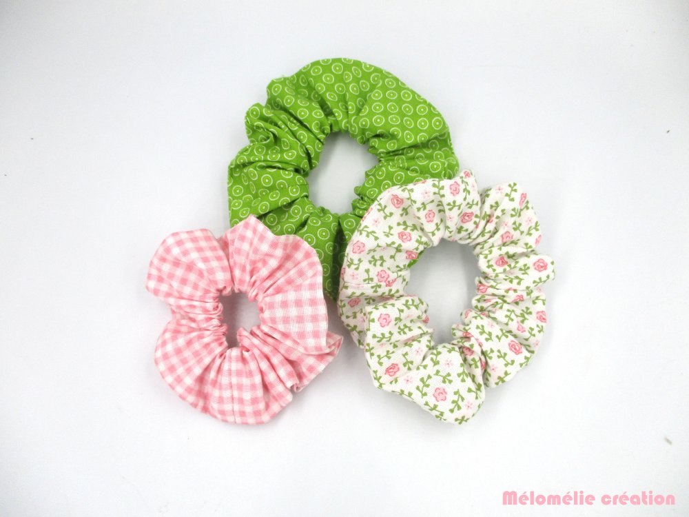 Chouchous en tissu pour cheveux, lot de 3, vert rose blanc, en coton, pour embellir votre coiffure