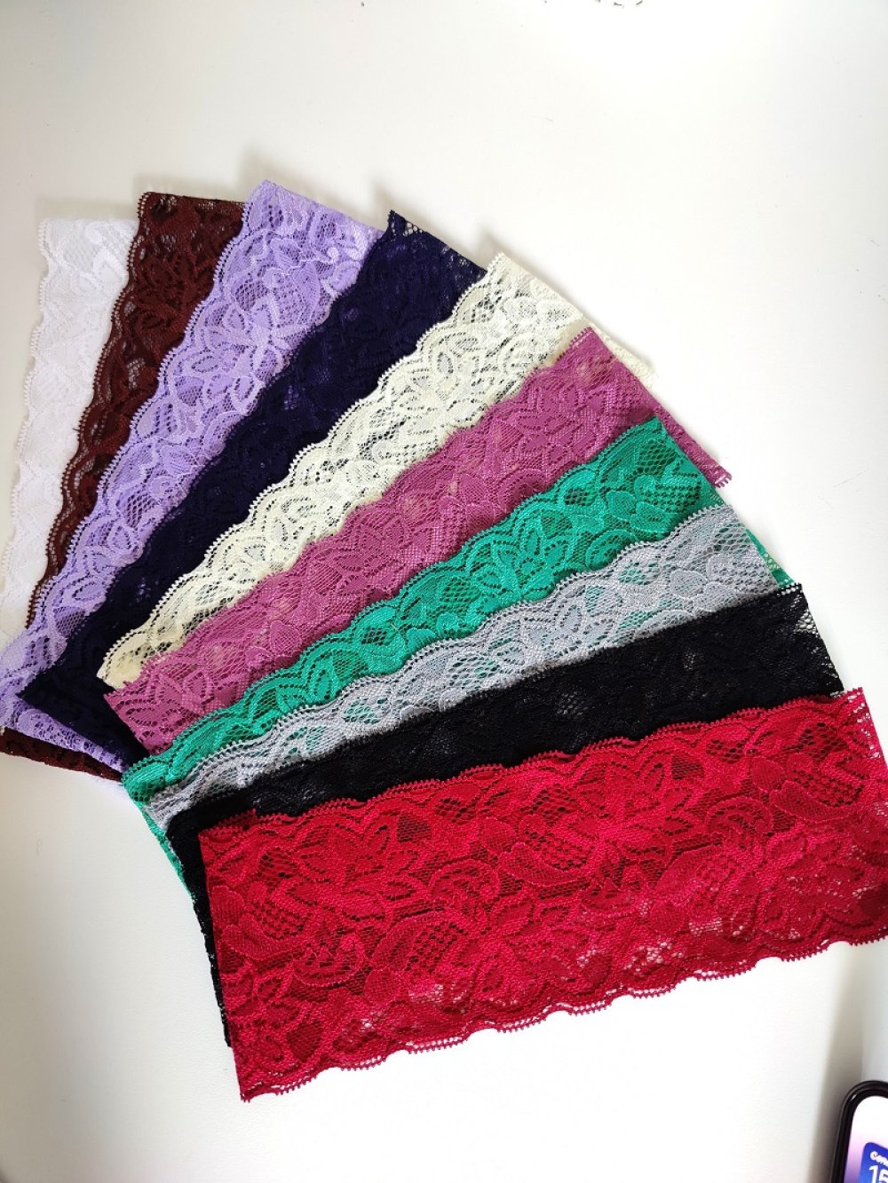 Lot de 10 Bandeau en dentelle élastique pour cheveux 10 couleurs pour femme fait à la main pour coiffure vintage