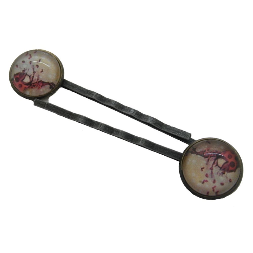 Lot de 2 barrettes en métal couleur bronze et cabochon petite fille rouge