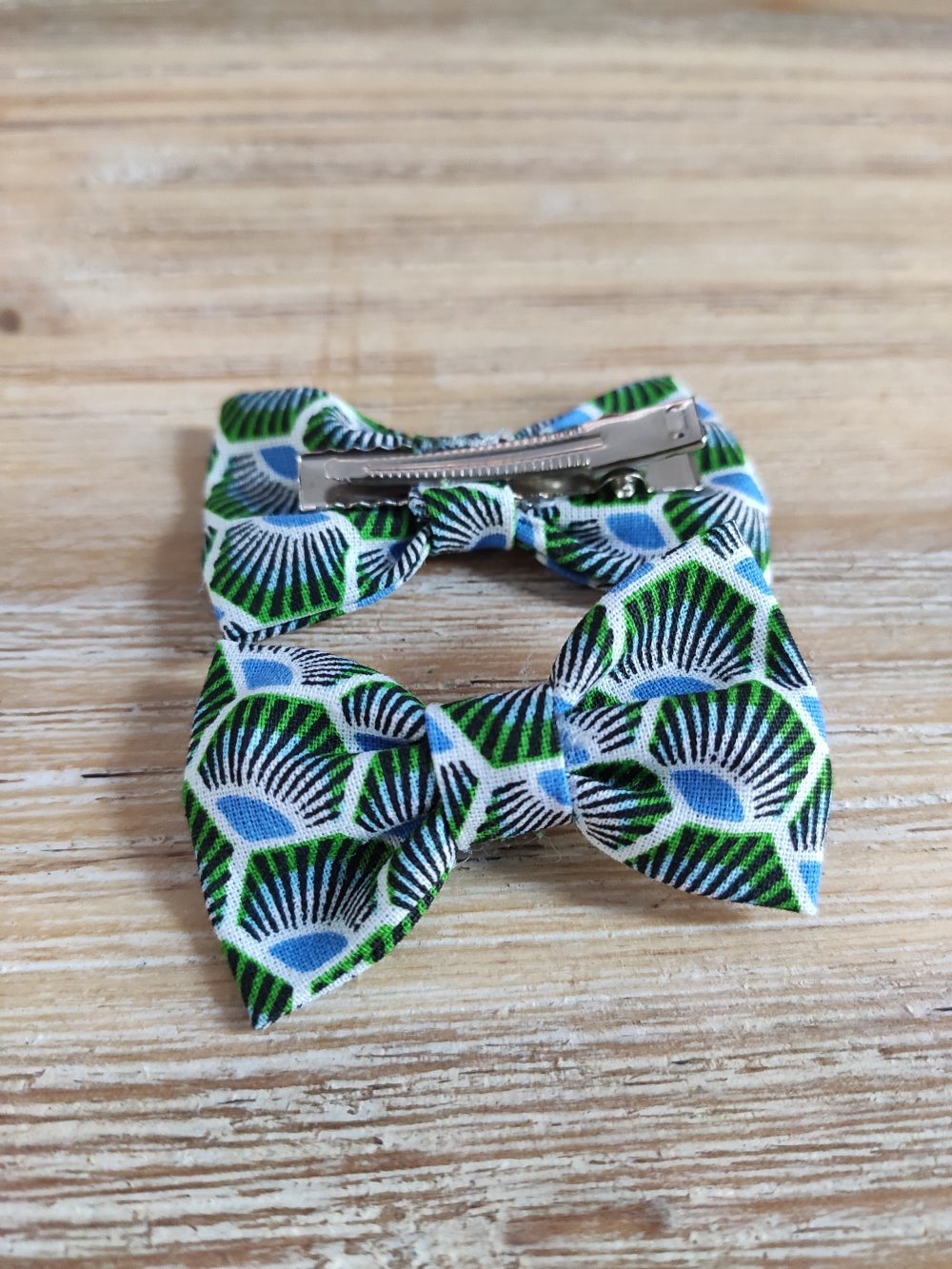 Lot de 2 barrettes nœud fait main - paon