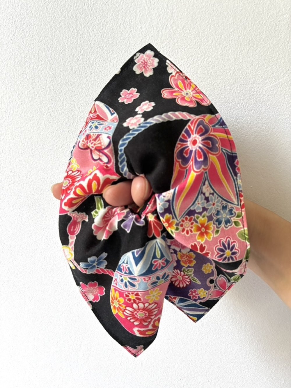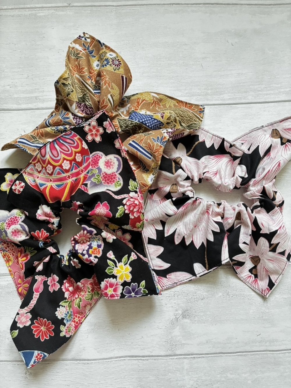 3 Scrunchies Chouchou carré réalisé avec du tissu Japonais
