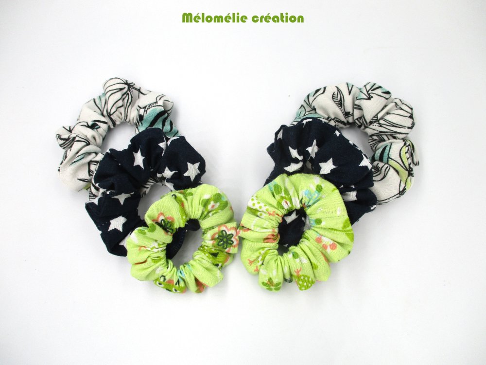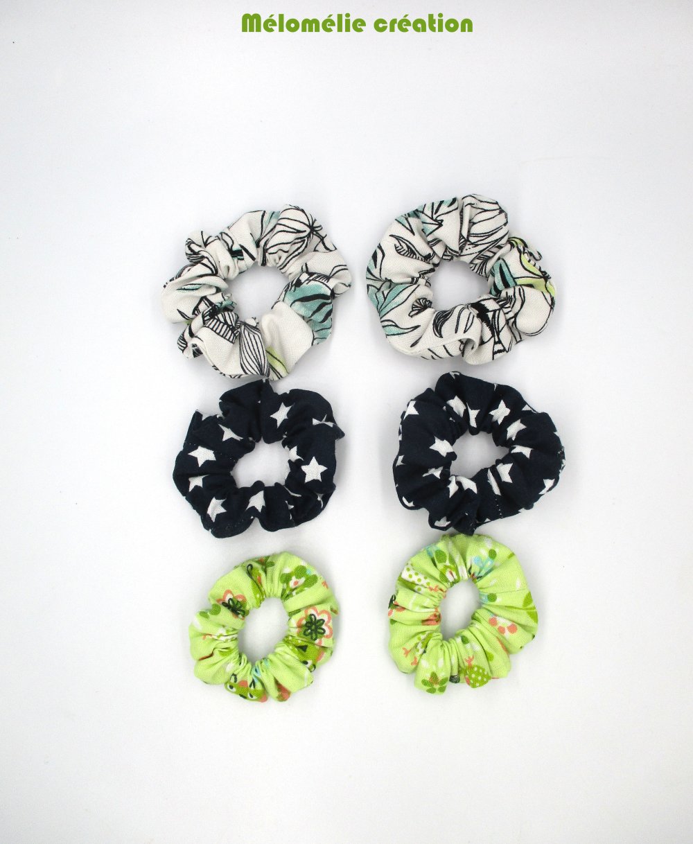 Mini Chouchous en tissu pour cheveux, lot de 6, vert bleu marine blanc, en coton, pour embellir votre coiffure