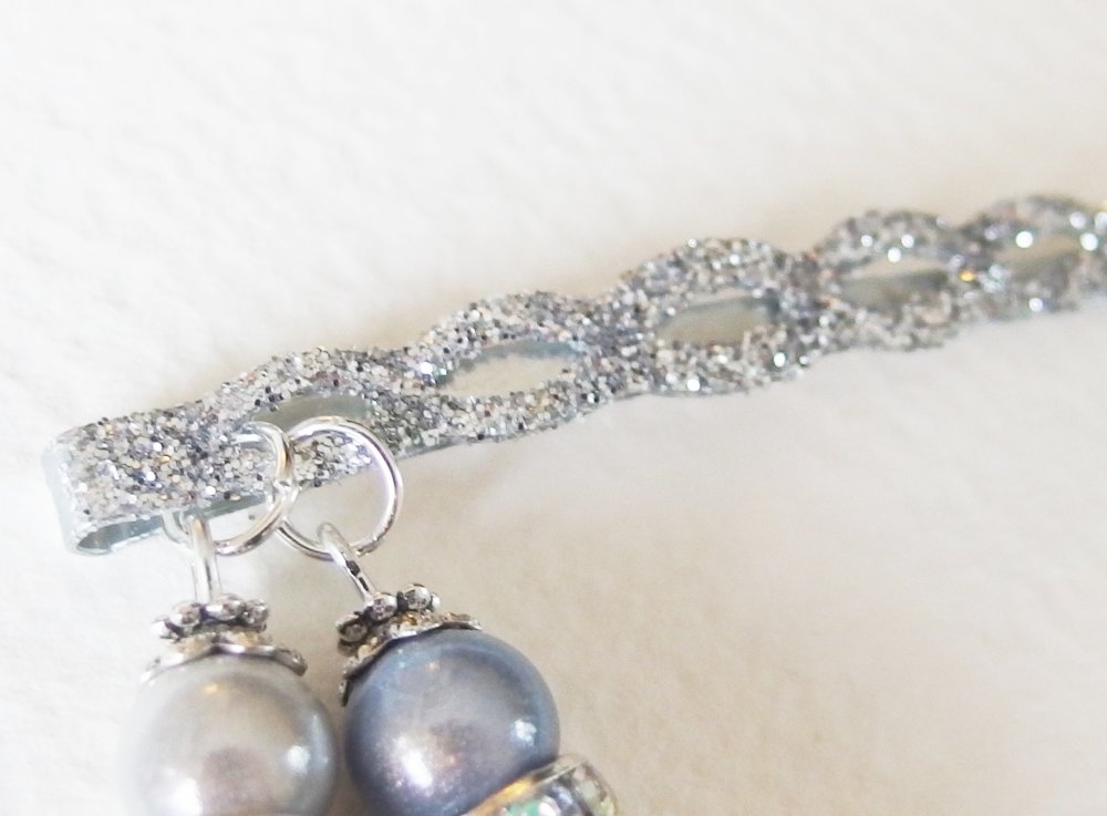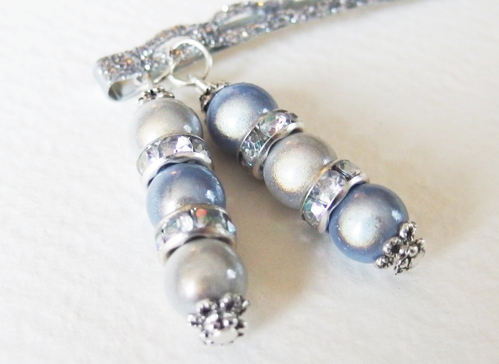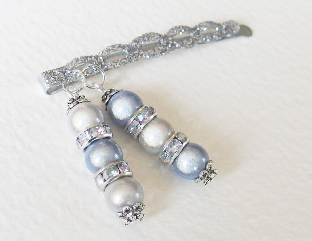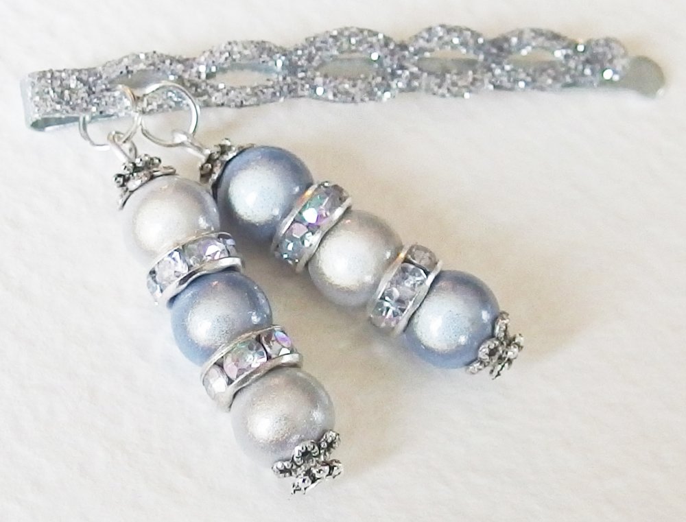 Idéal pour une soirée ou une fête, voici une magnifique pince à cheveux en métal avec paillettes argentées, agrémentée d'une composition avec Perles Magiques à reflets iridescents, rondelles argentées avec strass, coupelles Tibétaines et rondelles en métal argenté ciselé.