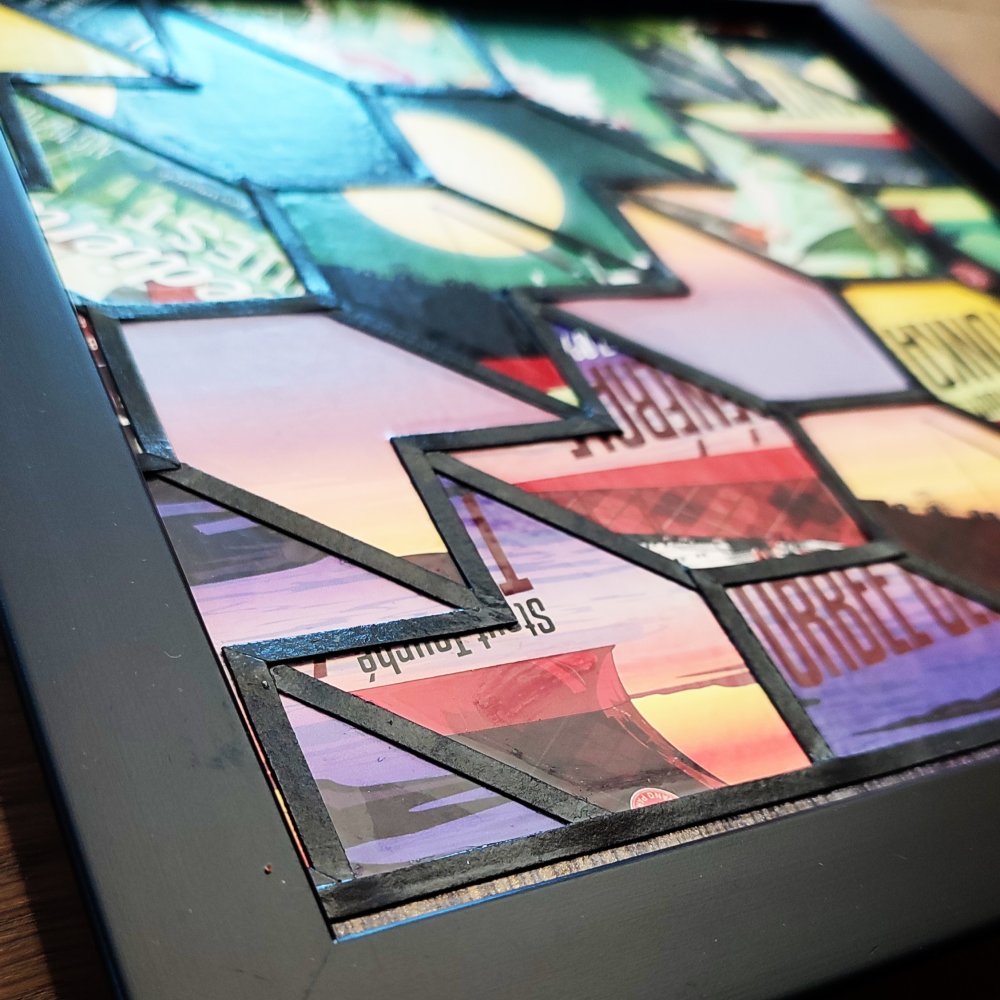 J'aime mélanger les références -des motifs japonais traditionnels et des sachets de carte Magic, des verres texturés qui évoquent les années folles et le dessin d'un personnage bien connu des amateurs de la série Futurama...vous découvrirez moults œuvres colorées sur ma boutique, chacune ayant sa propre histoire à découvrir, une texture particulière, des reflets uniques qui sauront éveiller votre curiosité et apporter ce je-ne-sais-quoi de singulier à votre intérieur.