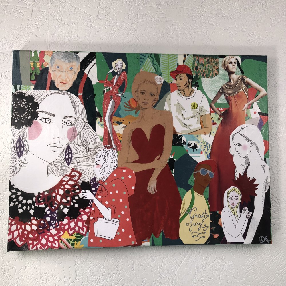 Tableau Collage Toile Tendue Réf 1332 Hauteur 30cm Largeur 40cm Couleur Multicolore Fait Main Modèle Unique