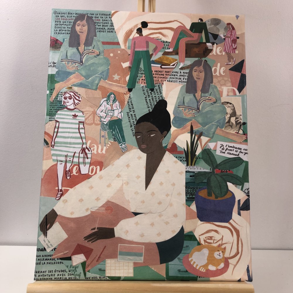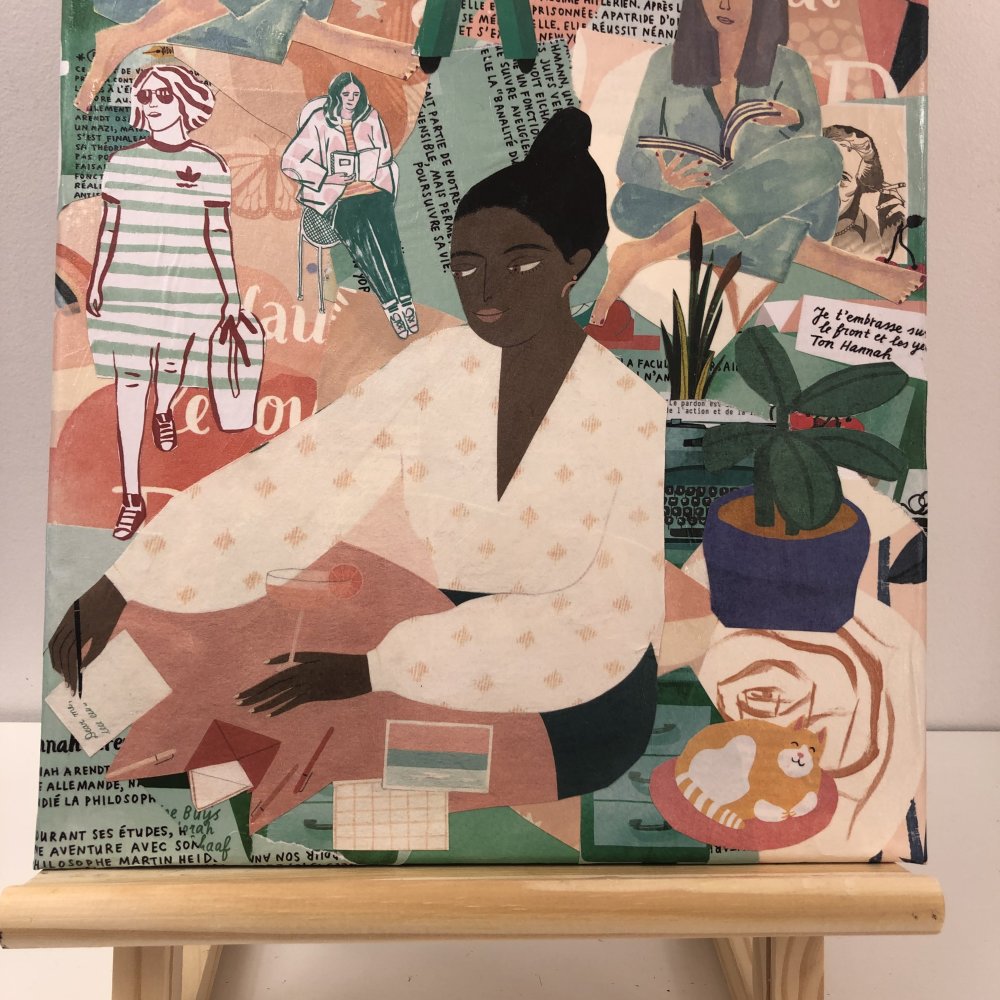 Tableau Collage Toile Tendue Réf 2513 Hauteur 40cm Largeur 30cm Couleur Multicolore Fait Main Modèle Unique