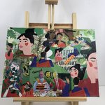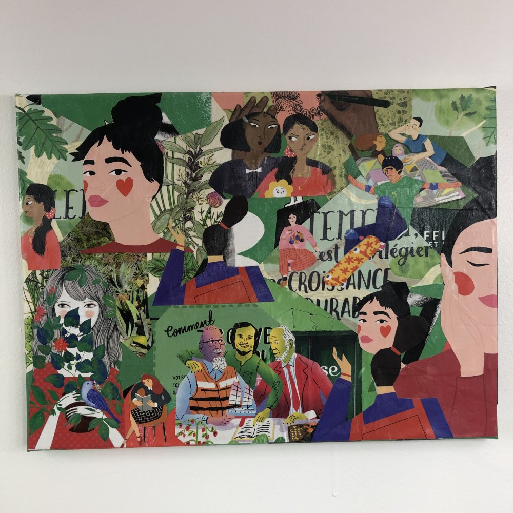 Tableau Collage Toile Tendue Réf 3013 Hauteur 30cm Largeur 40cm Couleur Vert/Rouge Fait Main Modèle Unique