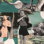 Tableaux Peinture/Collage Toile Tendue Réf 4844 Hauteur 40cm Largeur 50cm Couleur Vert/Multicolore Fait Main Modèle Unique