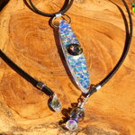 Collier Ajustable Boho Bohème Bi Fonction, Pendentif Ovale Résine Multicolore Iridescent AB, Cristal Autrichien Volcano, Spirale Argent
