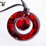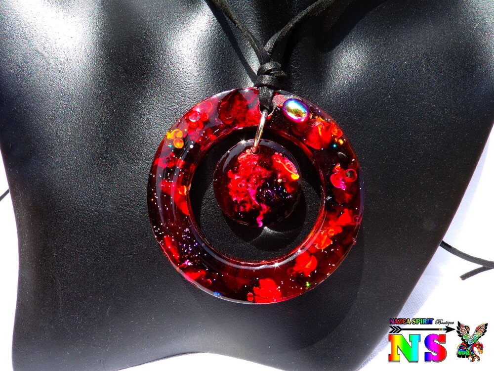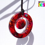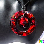 Bien que le pendentif soit imposant par ses 6 cm de diamètre celui-ci reste néanmoins très léger du fait d'avoir été réalisé à partir de résine cristal.