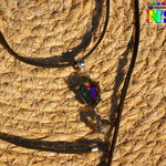 J'ai réalisé le tour de cou coulissant à partir d'un lacet de daim suédé effet finition cuir noir. Le tour de cou a une longueur de 60 cm ("23.62) et peut être desserré ou resserré grâce à un système coulissant qui vous permettra d'ajuster ce superbe collier à votre tour de cou. Vous pourrez ainsi soit porter ce collier en ras de cou, soit en collier mi-long soit façon sautoir.