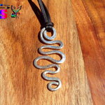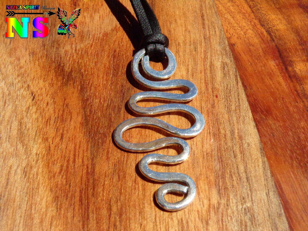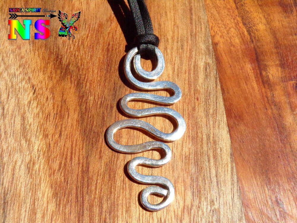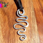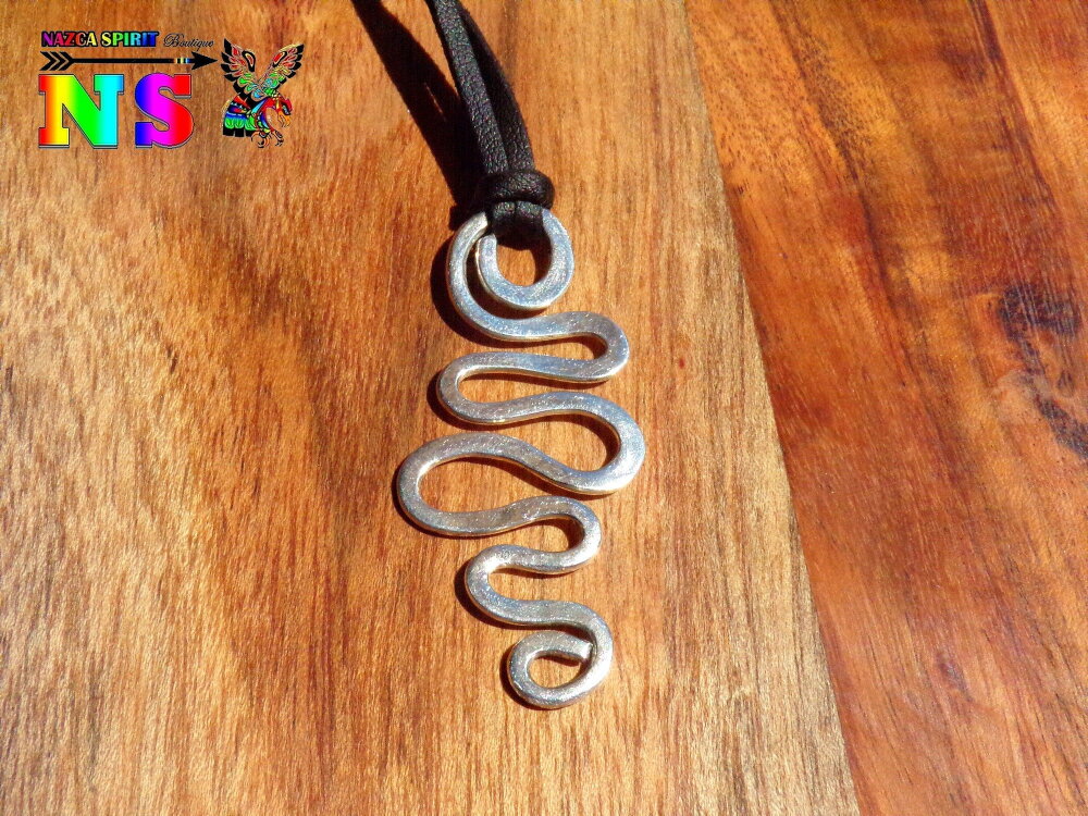 Je vous propose un collier ajustable tour de cou en daim suédé noir finition cuir et son pendentif entièrement réalisé à la main à partir de fil d'argent de 2 mm de diamètre que j'ai façonné en utilisant la technique du martelage. Le pendentif représente un symbole maya.