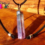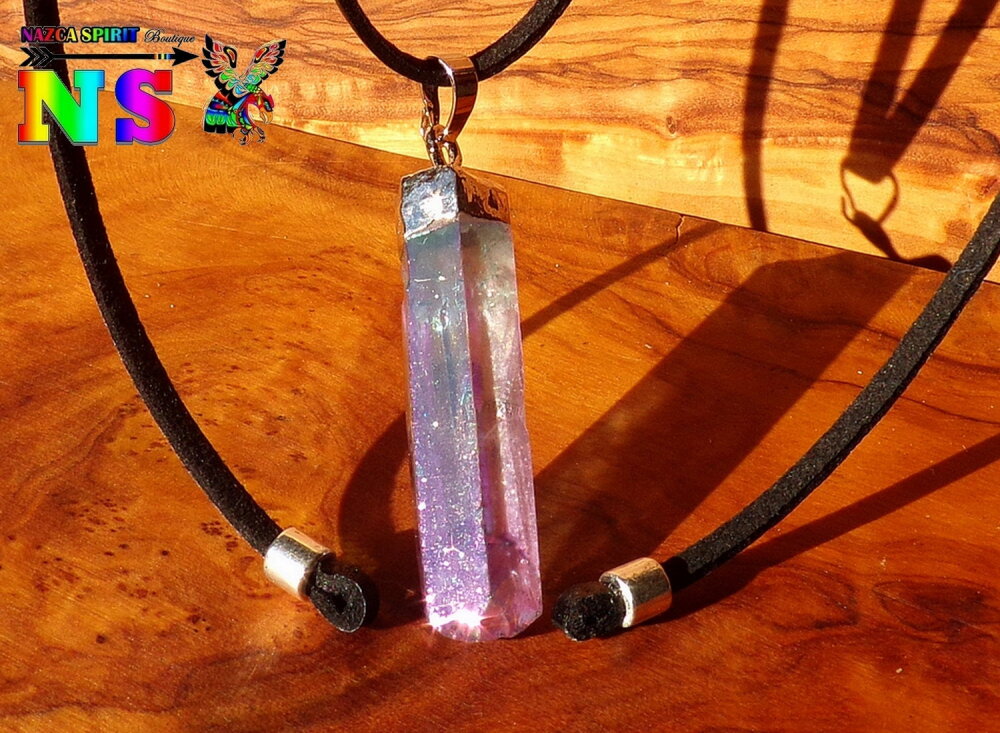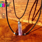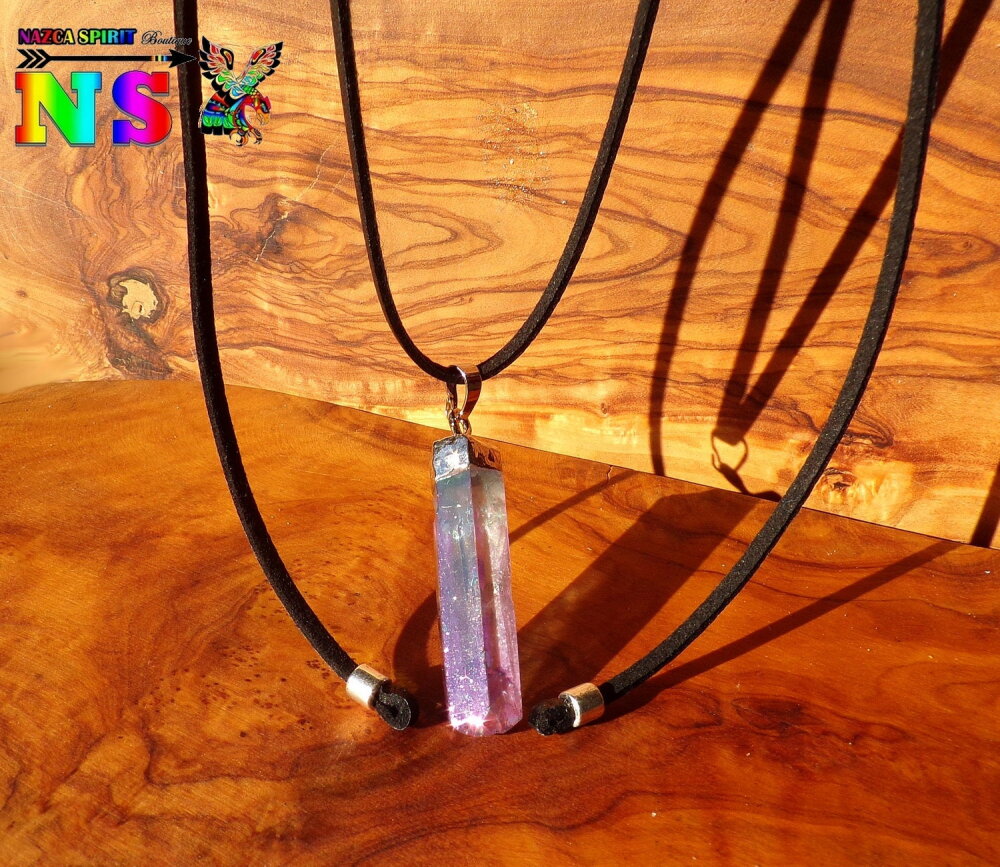 Collier Ajustable Pendentif Pointe Cristal de Roche Quartz / Bijou Bohème Ethnique / Pendentif Cristal Naturel / Couleur Améthyste AB