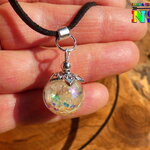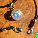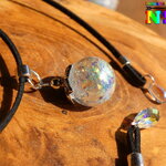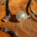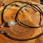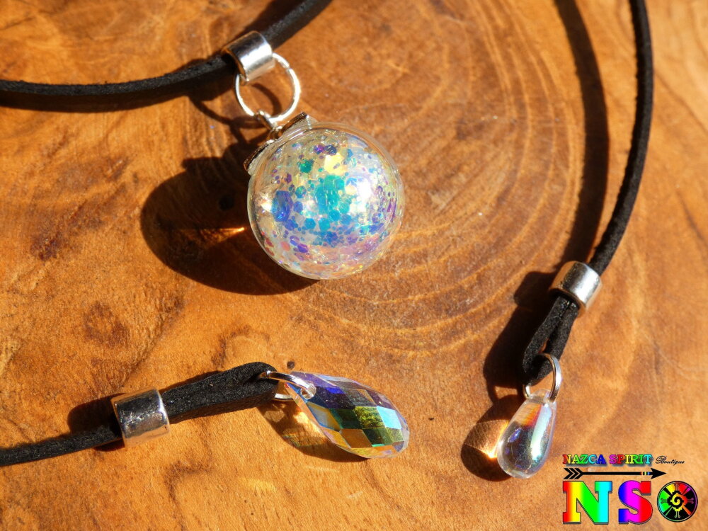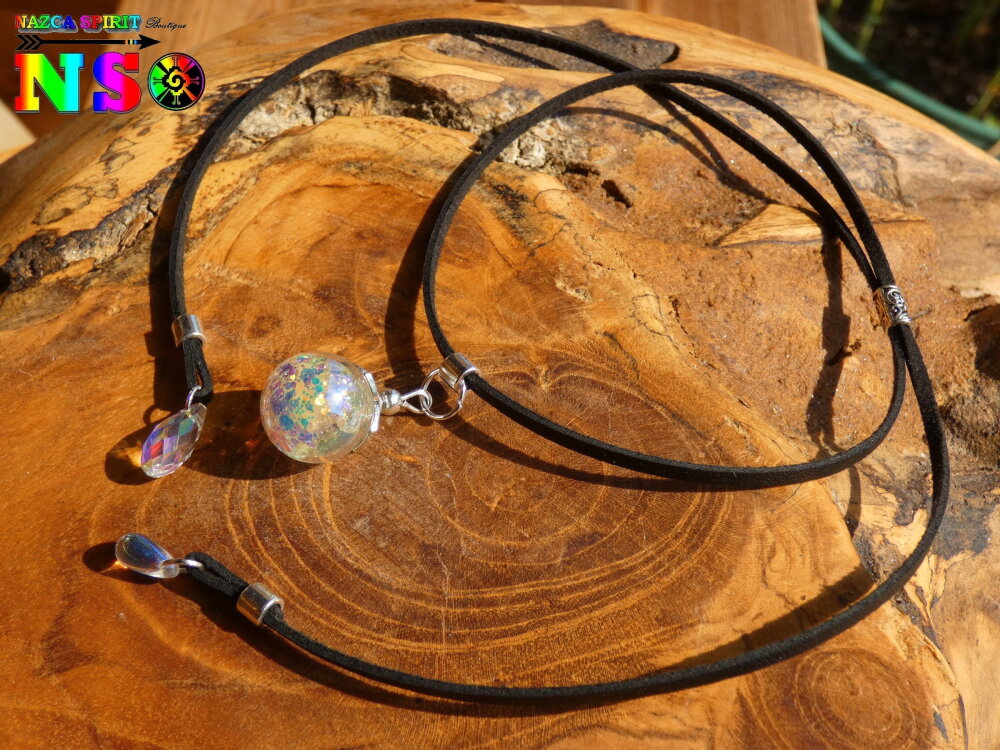 Collier Ajustable Tour de Cou Daim Suédé Noir, Pendentif Orbe Magique, Bijou de Fée Lumineux, Sphère Féérique Multicolore Iridescente