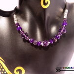 Les perles facettées sont en améthystes naturelles russes. Quant aux autres perles (rondes lisses et forme baroque) il s'agit d'améthystes naturelles françaises