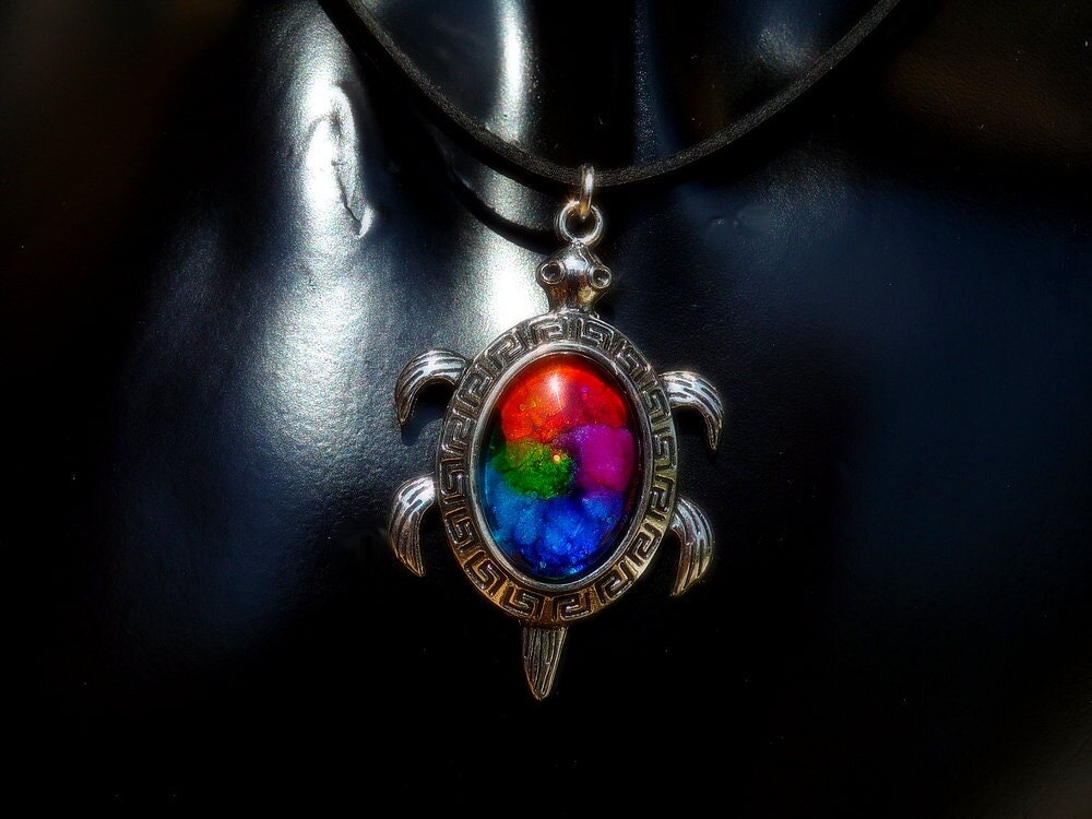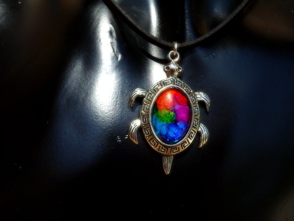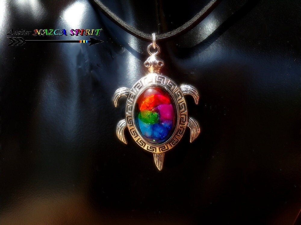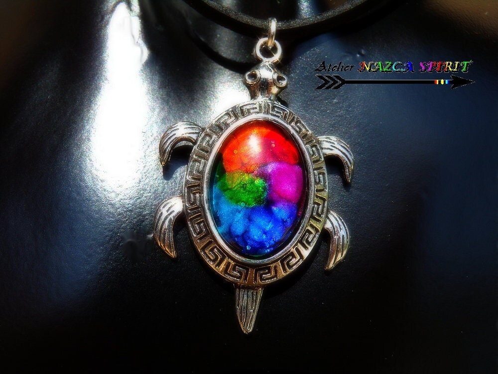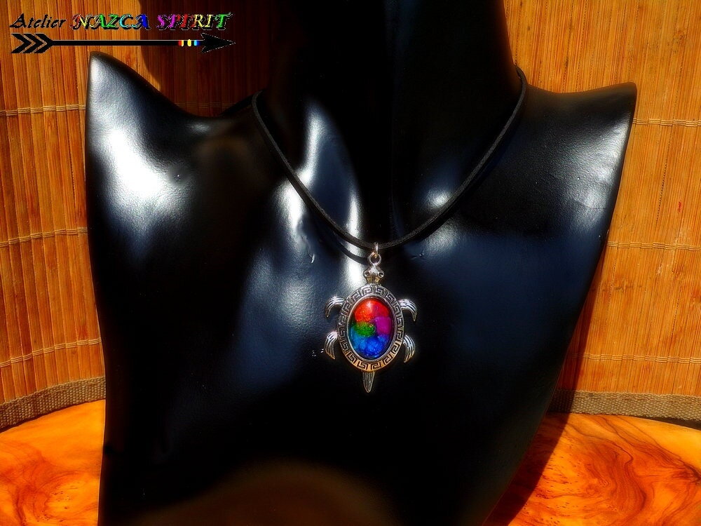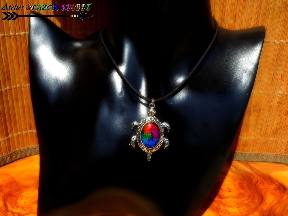 Collier artisanal réglable / tortue aborigène australie / pendentif multicolore / porte bonheur / création unique / bijou mixte