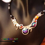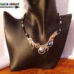 Les couleurs sont ultra lumineuses ! J'ai choisi ces couleurs afin d'apporter un esprit vitrail à cette création très originale. Le cabochon rivoli cristal autrichien facetté couleur aurore boréale a été choisi afin d'apporter une lumière supplémentaire à ma création. Les couleurs sont ultra lumineuses et sont stupéfiantes lorsqu le collier est exposé sous les rayons solaires. Bijou très iridescent !