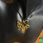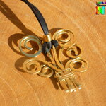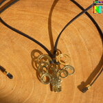 Je vous propose de découvrir un superbe collier ajustable d'inspiration bohème. Il s'agit d'un collier que j'ai entièrement réalisé à la main à partir de lacet en daim suédé noir finition effet cuir pour créer le tour de cou, et de fil en laiton or (origine : France) que j'ai façonné pour réaliser un arbre de vie. Pour aplanir mon fil de laiton, je l'ai donc martelé, puis je l'ai poncé et ensuite j'ai poli ce superbe pendentif pour obtenir une belle finition or miroir.