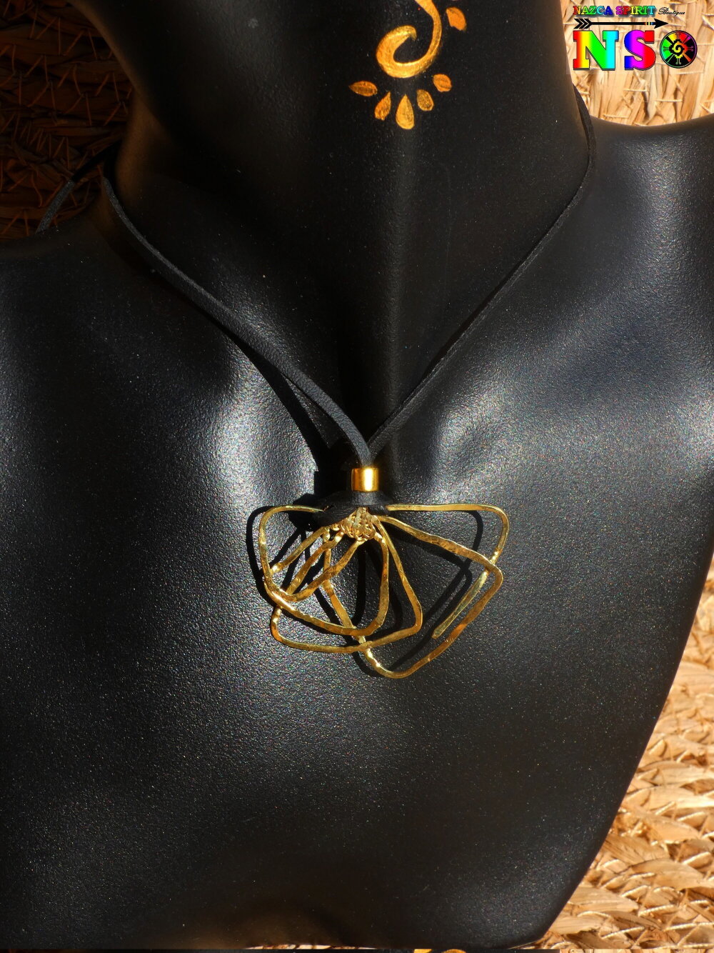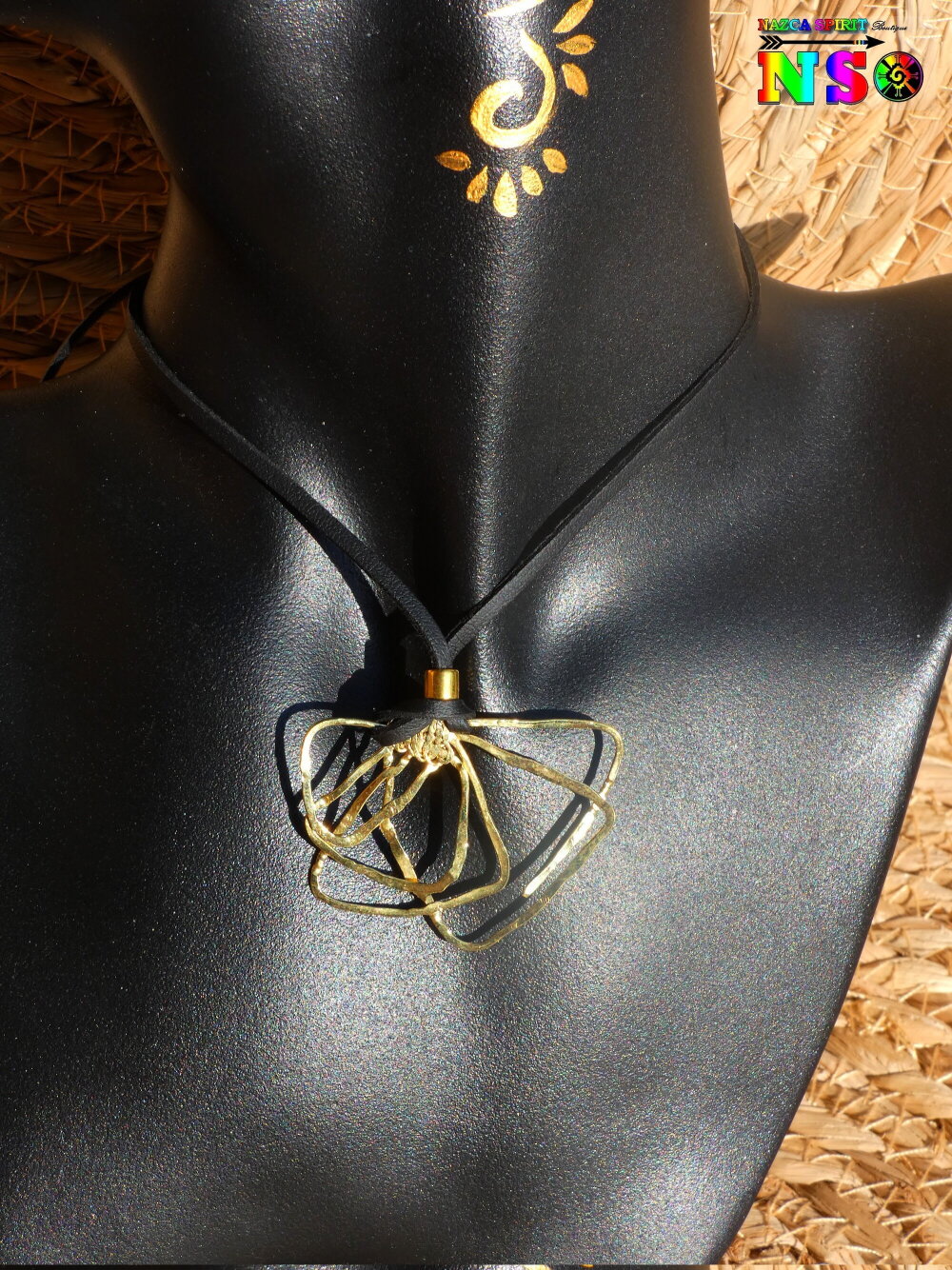Collier Bohème Ajustable Pendentif Artisanal Fleur Design- Bijou Fait Main en Laiton Or - Création Artisanale Originale Unique pour Femme