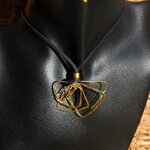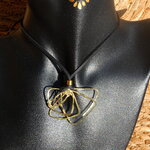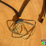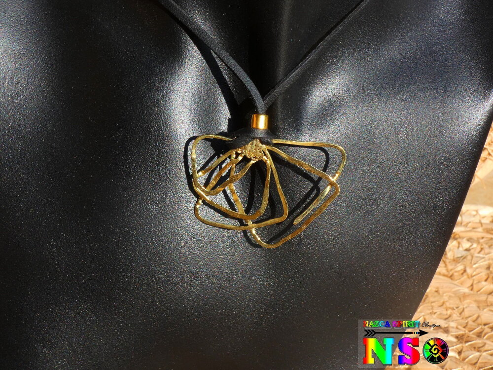 Je vous propose de découvrir un superbe collier ajustable d'inspiration bohème. Il s'agit d'un collier que j'ai entièrement réalisé à la main à partir de lacet en daim suédé noir finition effet cuir pour créer le tour de cou, et de fil en laiton or (origine : France) que j'ai façonné pour réaliser une jolie fleur aux formes design couture. Pour aplanir mon fil de laiton, je l'ai donc martelé, puis je l'ai poncé et ensuite j'ai poli ce superbe pendentif pour obtenir une belle finition or miroir.