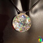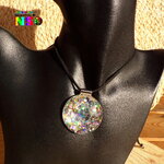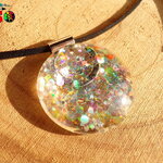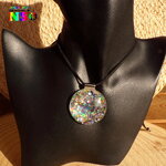 Collier Bohème Ajustable Pendentif en Verre Rond Dôme de 4.5 cm ("1.77) Multicolore Iridescent - Bijou Artisanal Fait Main Hologrammes