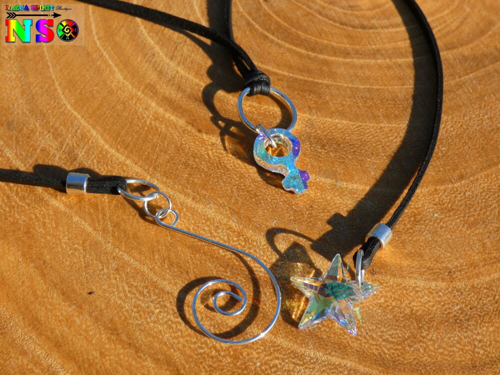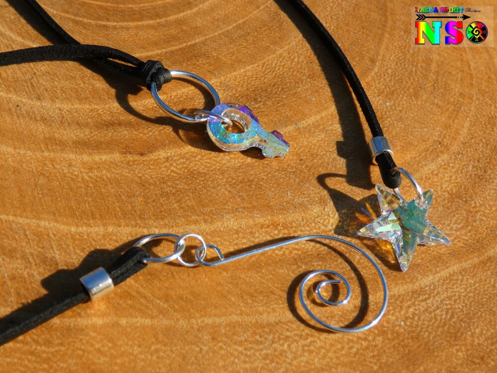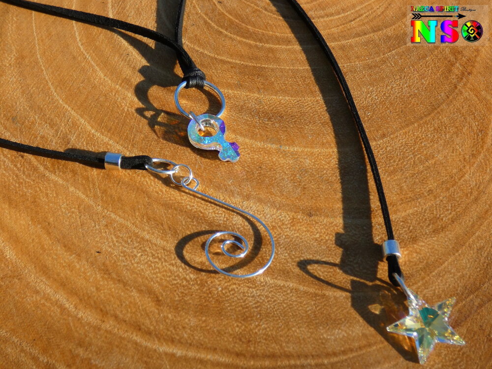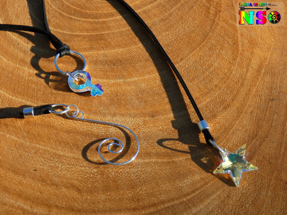 Forme des pendentifs : symbole féminin et étoile en cristal