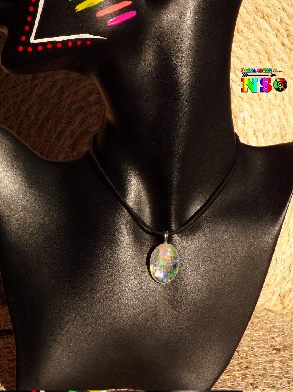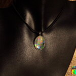 Collier Bohème Hippie Ajustable Pendentif ovale Verre de 3 cm ("1.18) Bulles Magiques Multicolore Iridescent - Bijou Artisanal Opalescent