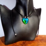 Particularité : les couleurs du pendentif évoluent en fonction de la lumière naturelle ou artificielle