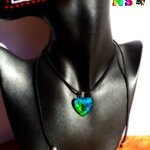 Collier Bohème Réglable Pendentif Coeur en Verre / Bijou d'Amour / Pendentif Artisanal Handmade / Création Unique /Turquoise Vert Iridescent