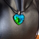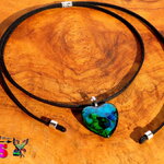 Collier Bohème Réglable Pendentif Coeur en Verre / Bijou d'Amour / Pendentif Artisanal Handmade / Création Unique /Turquoise Vert Iridescent.