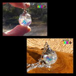 Collier Chaîne Argent 925, Pendentif Orbe Magique, Bijou de Fée Lumineux, Sphère Féérique Iridescente, Bijou Luminescent la Nuit