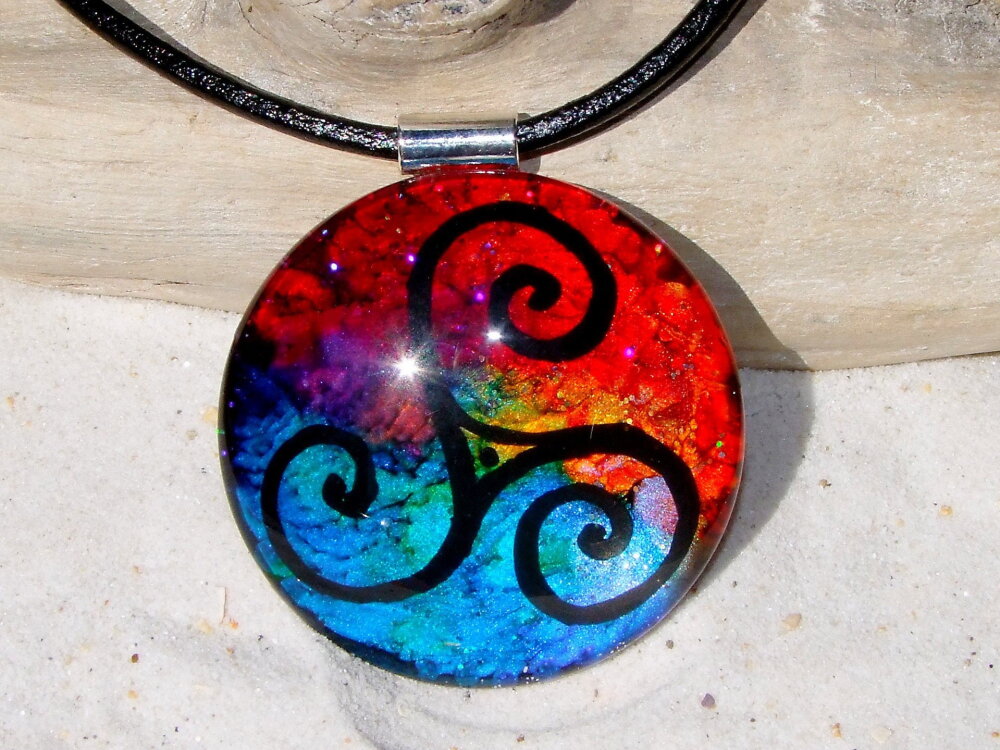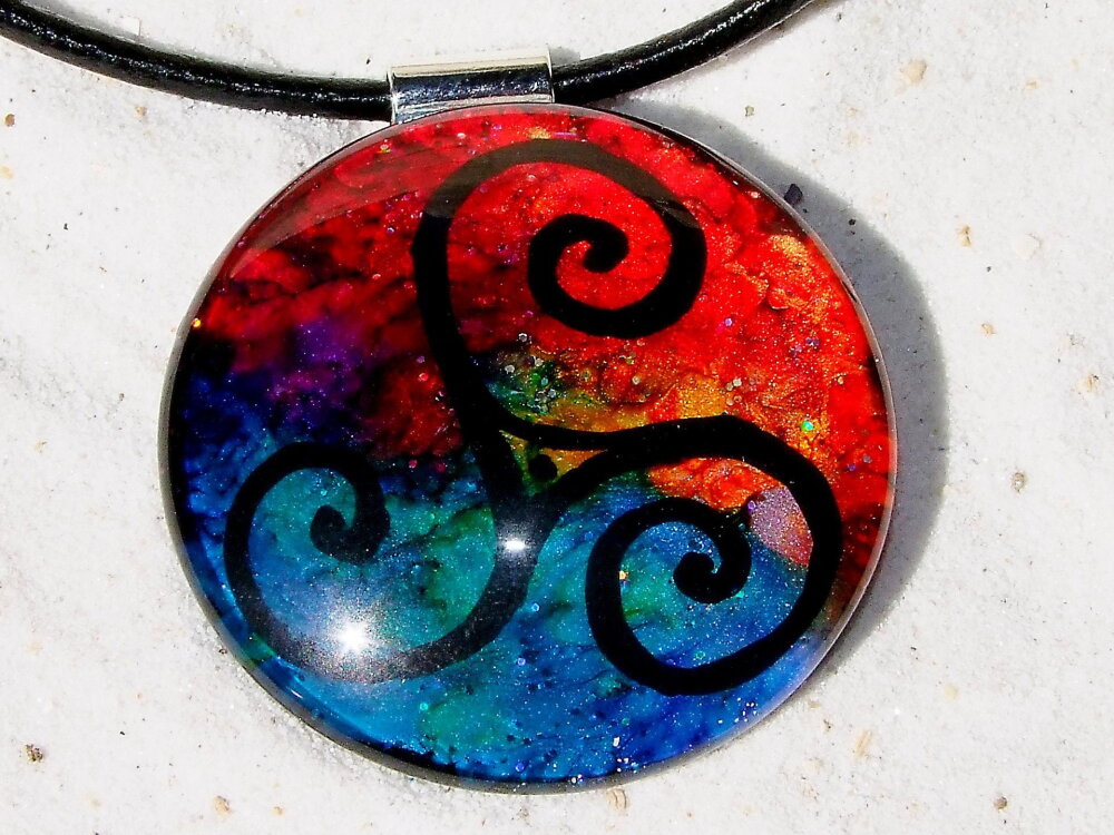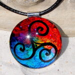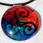 Lors de la réalisation de ce cabochon, j'ai dessiné à "main levée" un motif triskel en noir.