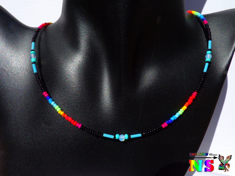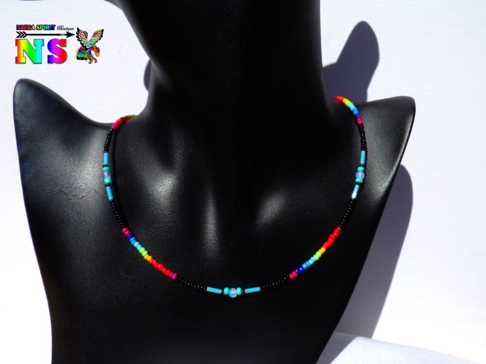 Collier Native American - Bijou Navajo - Collier pour Homme - Anniversaire - Fête des Pères - Artisanat Amérindien - Perles de Rocaille en Verre - Multicolore