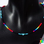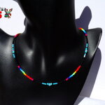 Collier de Perles en Verre Tribal Ethnique - Bijou Fait Main pour Homme et Femme - Perles de Rocaille en Verre Multicolore