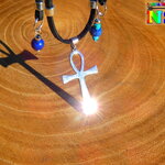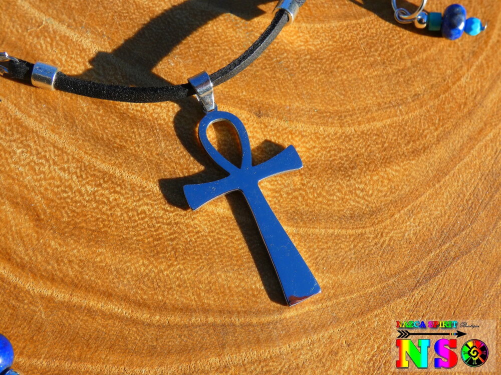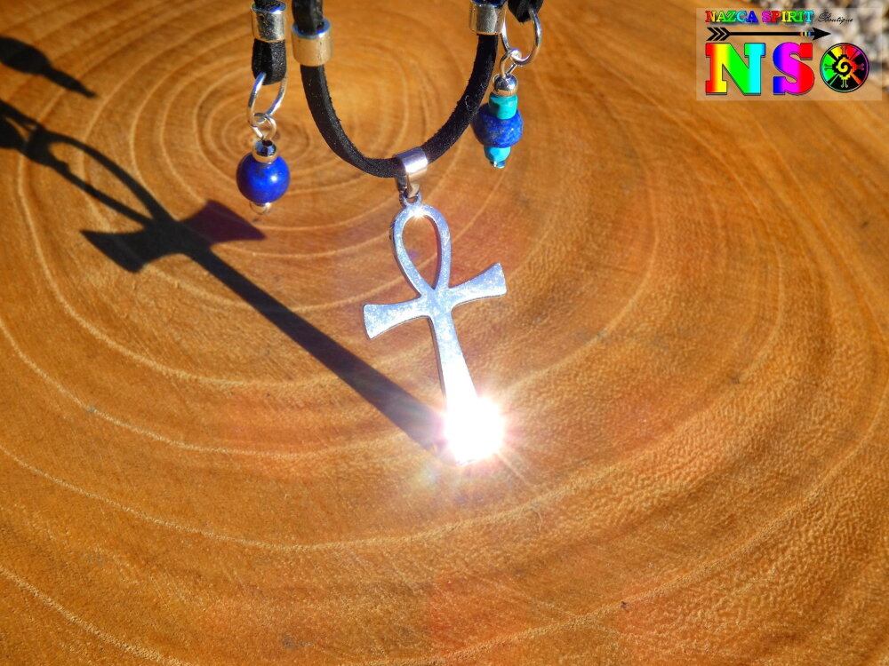 J'ai choisi comme pendant une croix d'ankh, car elle est, depuis l'antiquité, le symbole de la réincarnation pour les égyptiens. Elle est aussi appelée croix ansée, croix de vie éternelle.