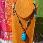 Matériaux : laiton or, céramique émaillée (Origine : Egypte), cristal de bohème (Origine : Tchécoslovaquie), Lapis lazuli naturel (Origine : Egypte), turquoise naturelle (Origine : Ithaca - USA), daim suédé effet finition cuir