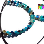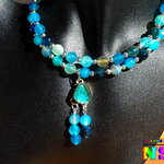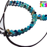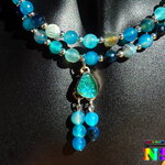 Je vous présente une création très originale, ultra lumineuse et colorée. Il s'agit d'un collier ajustable aux notes océanes réalisé à partir d'un lacet suédine effet cuir noir sur lequel j'ai relié deux connecteurs en perles réalisés à partir de fil en acier gainé pour apporter de solidité à ce superbe collier sur lequel j'ai enfilé des perles rondes en agate veine de dragon teintées et facettées séparées par de petites perles intercalaires rondes en cuivre plaqué argent.