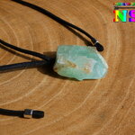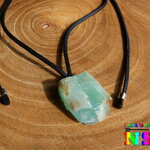 Collier Ethnique Ajustable et son Pendentif en Calcite Verte Naturelle Originaire du Mexique - Bijou en Pierre Naturelle Lithothérapie