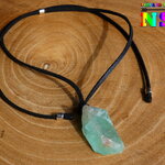Collier Ethnique Ajustable Tour de Cou Daim Suédé Effet Cuir et Pendentif Calcite Verte Naturelle originaire du Mexique - Bijou en Pierre Naturelle Lithothérapie.