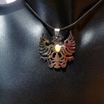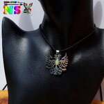 Ce collier a été réalisé à partir d'un lacet en daim suédé effet cuir sur lequel j'ai suspendu un magnifique pendentif représentant l'oiseau du tonnerre "thunderbird".