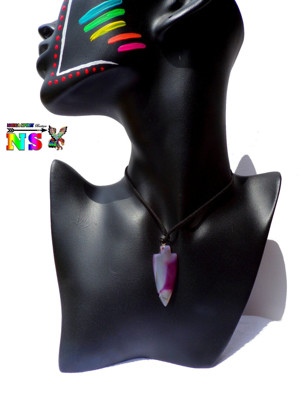J'ai réalisé ce superbe collier réglable tribal ethnique à partir d'un cordon en coton ciré noir et d'une superbe pointe de flèche en agate naturelle sculptée et polie.