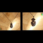 Le pendentif mesure 3.5 cm de long x 2 cm de large. Le bout du tour de cou est agrémenté d'une perle en pierre fine de protection naturelle de grand qualité 6 mm à 8 mm de diamètre!