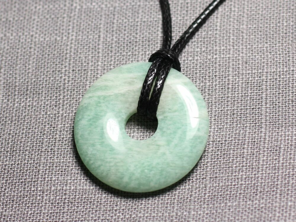 Collier Pendentif Pierre semi précieuse - Amazonite Russie Donut Pi 30mm