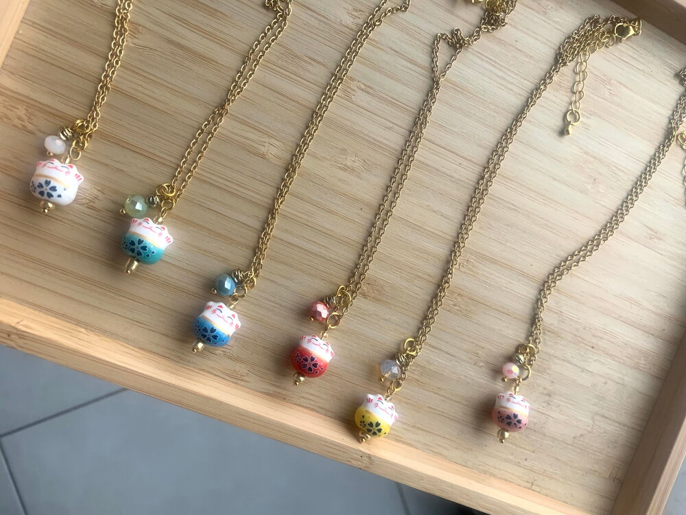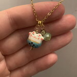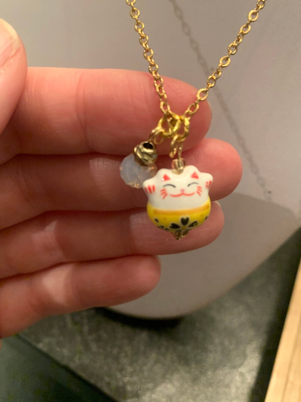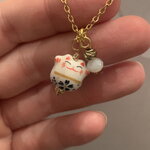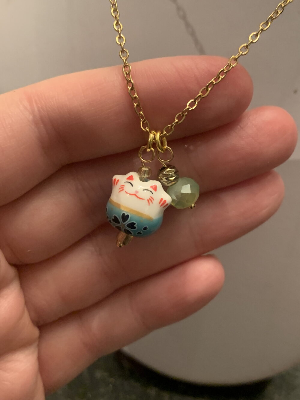 Collier pendentif chat Chinois porte bonheur , fait main et crée par nos soins.