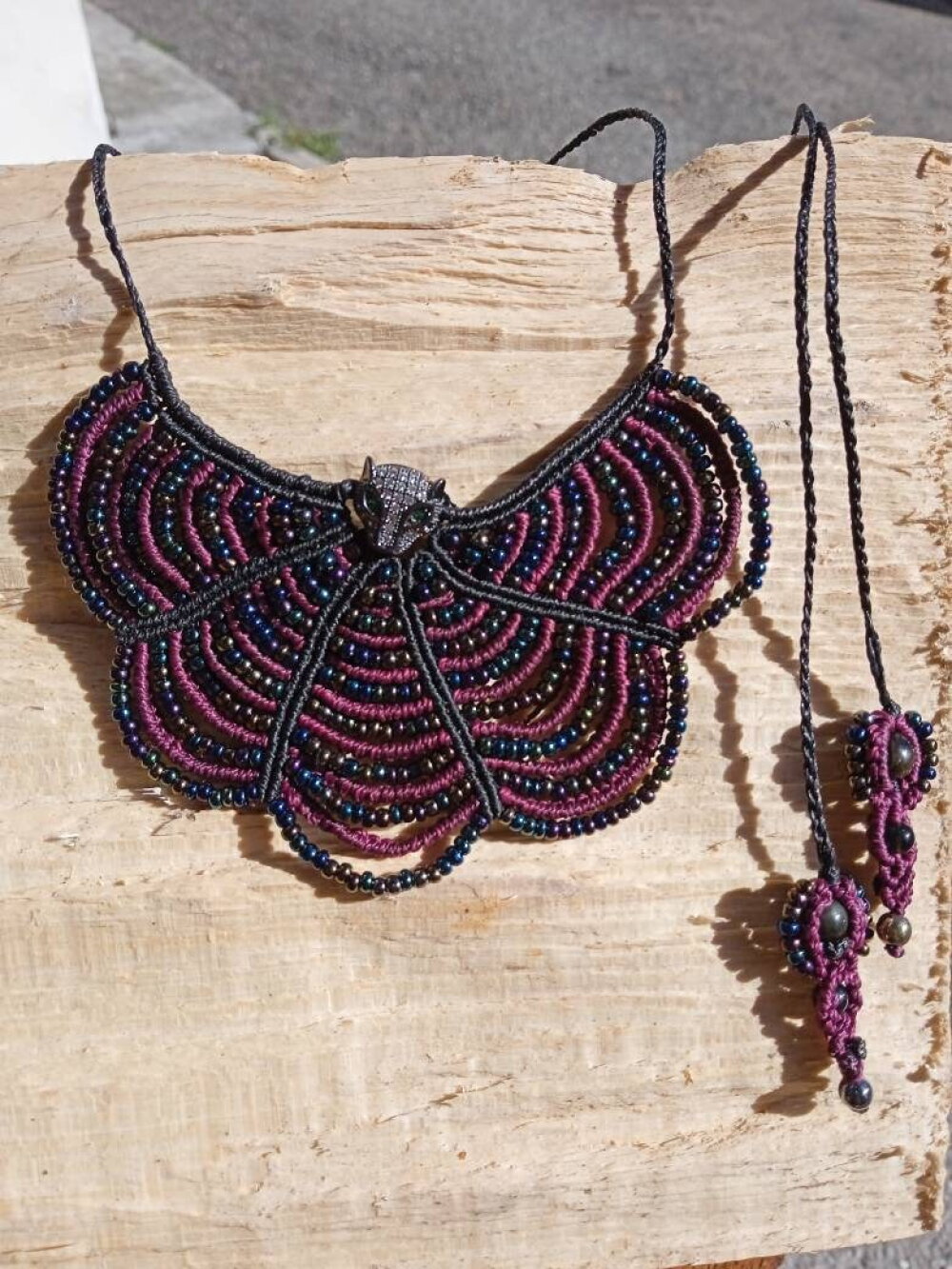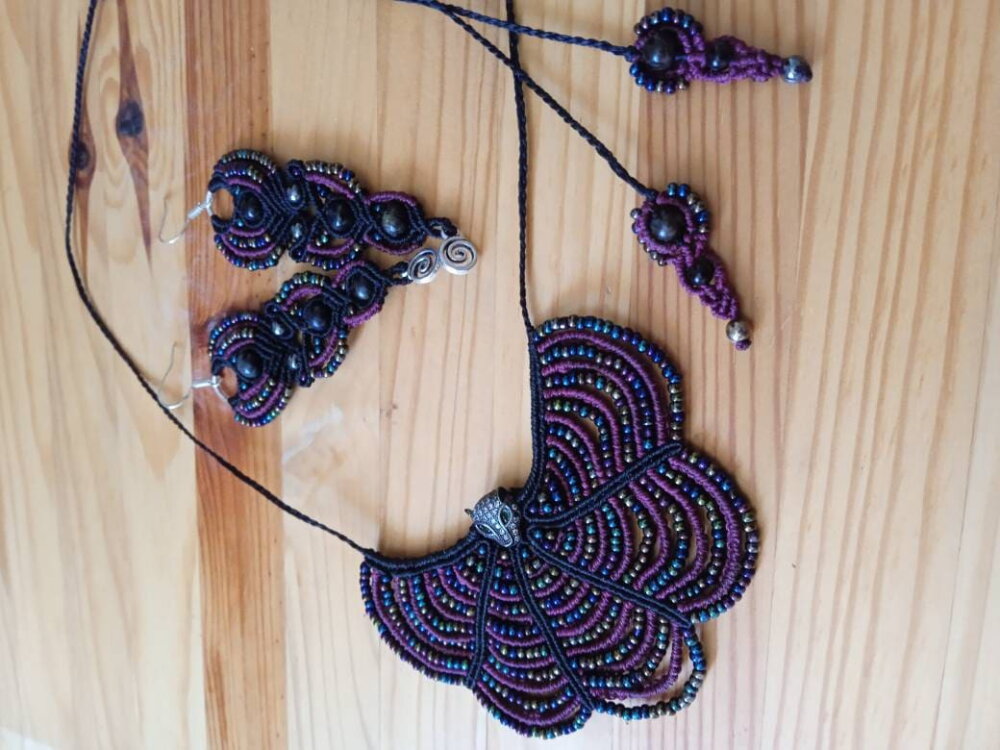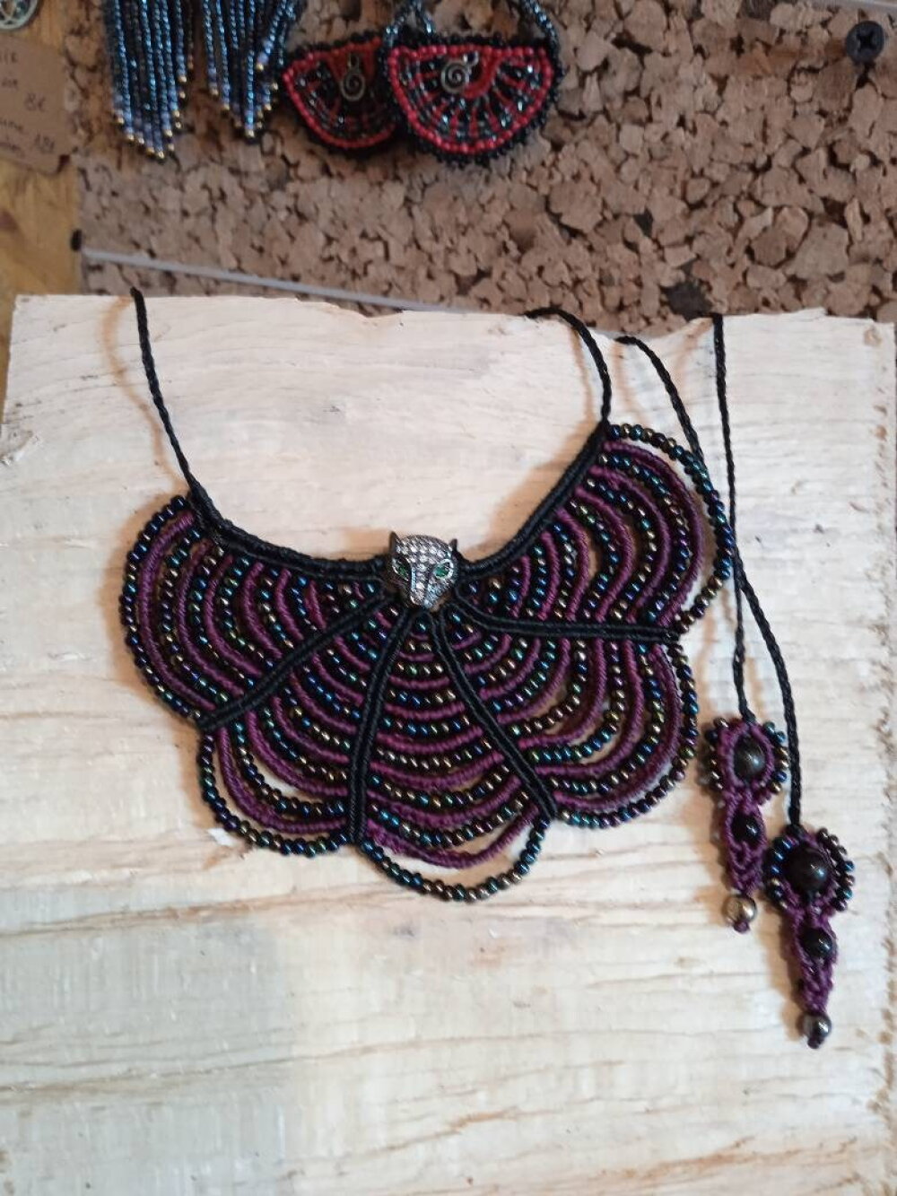 Collier plastron en micro macramé et perles